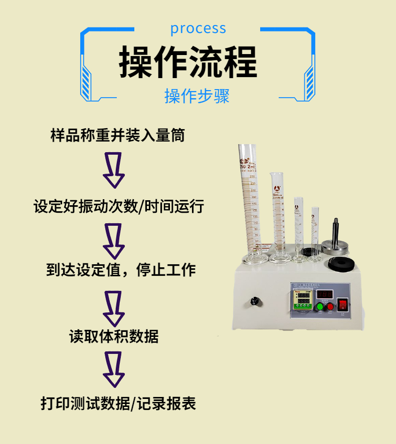 2.粉體振實密度儀操作流程及步驟: