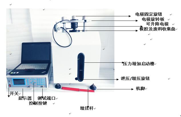 已知量的粉體,在液壓動力下壓縮體積至設(shè)定壓力值或壓強(qiáng),在線測量粉體電阻、電阻率、電導(dǎo)率,并記錄數(shù)據(jù).