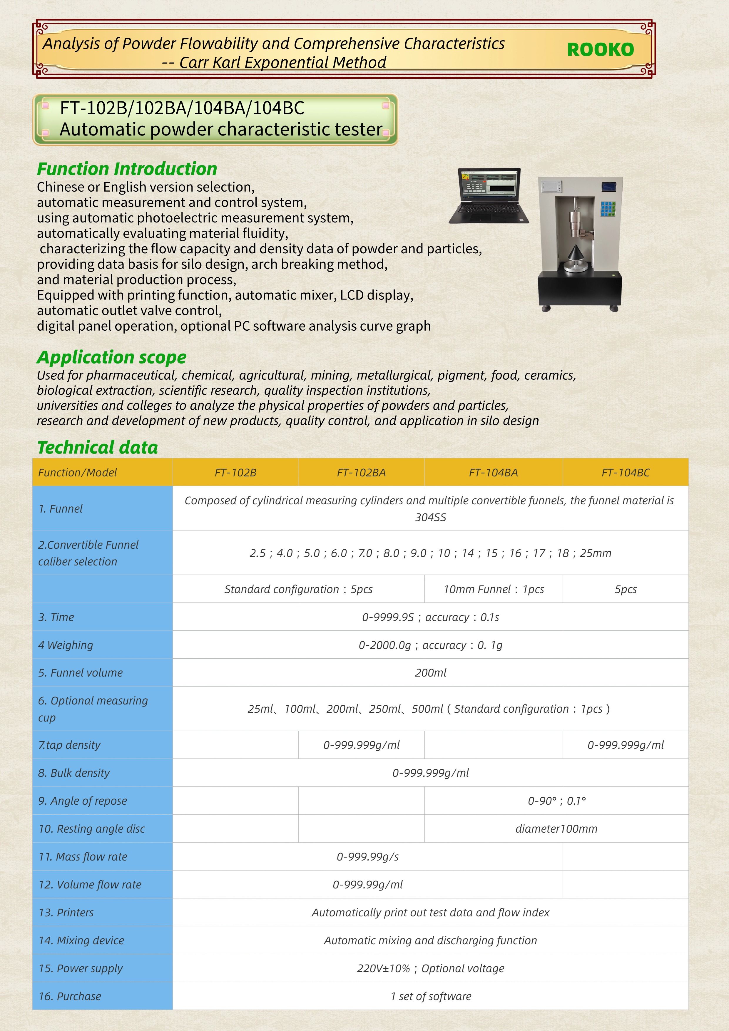 FT-102B/102BA/104BA/104BC Automatic powder characteristic tester