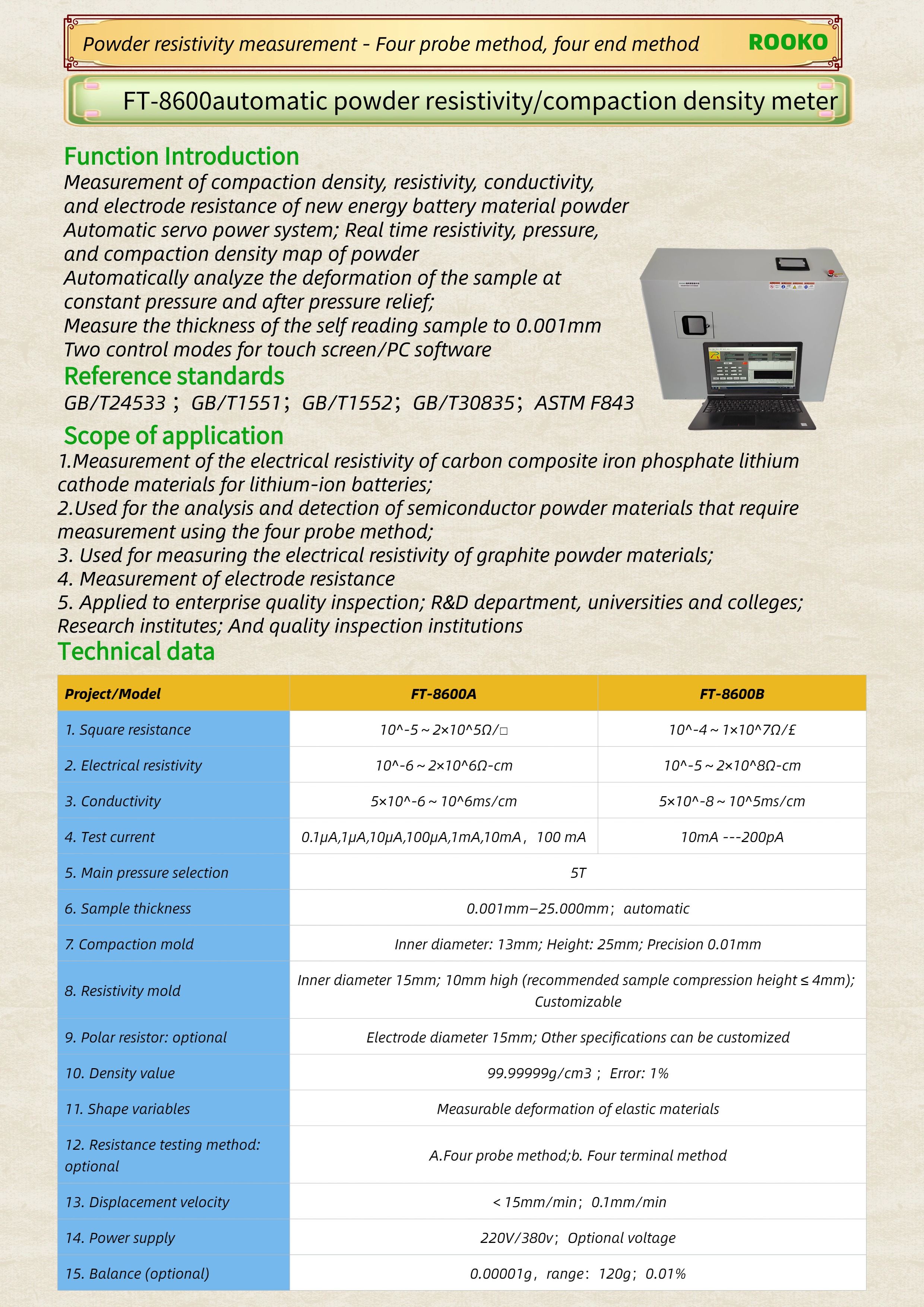 • FT-8600 automatic powder resistivity/compaction density meter